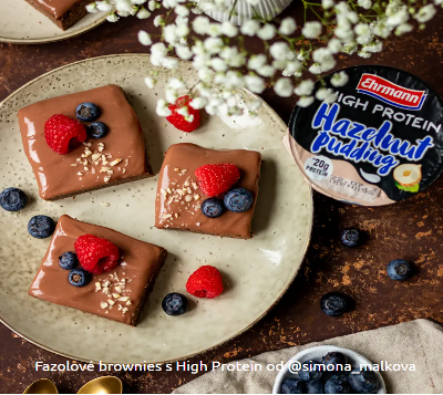 Öblítsük le a babot, csepegtessük le, és turmixoljuk össze az összes többi hozzávalóval. Öntsük a sima tésztát egy kis tepsibe (20×20 cm), és süssük a brownie-t 20 percig 180 fokon. Sütés után hagyjuk kissé kihűlni, kenjük meg a High Protein pudinggal, vágjuk 9 részre, díszítsük gyümölcsökkel és tálaljuk.